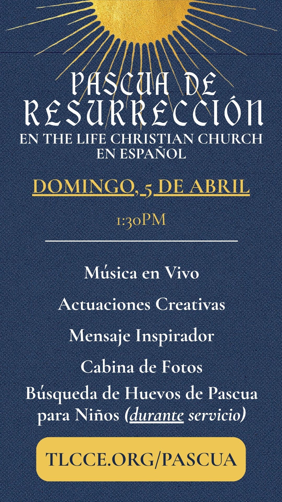 Todos están bienvenidos e invitados a celebrar el Fin de Semana de Pascua en The Life Christian Church En Español — un tiempo lleno de música poderosa, mensajes inspiradores, presentaciones creativas y experiencias significativas para todas las edades.